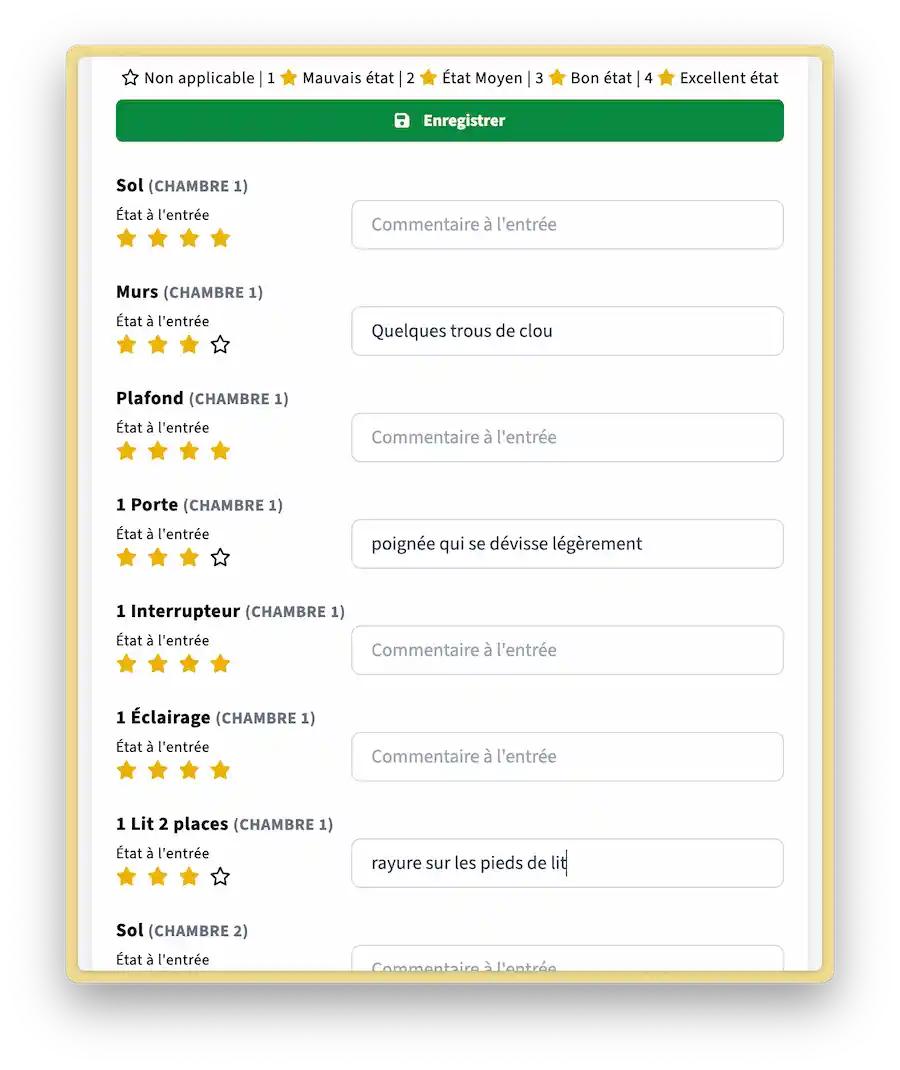 Nous avons cependant prévu le cas où vous auriez fait l'inventaire d'entrée sur un autre support. Vous pouvez le compléter si vous le souhaitez (et uniquement dans ce cas car dans tous les cas, c'est l'état des lieux d'entrée qui fait foi).