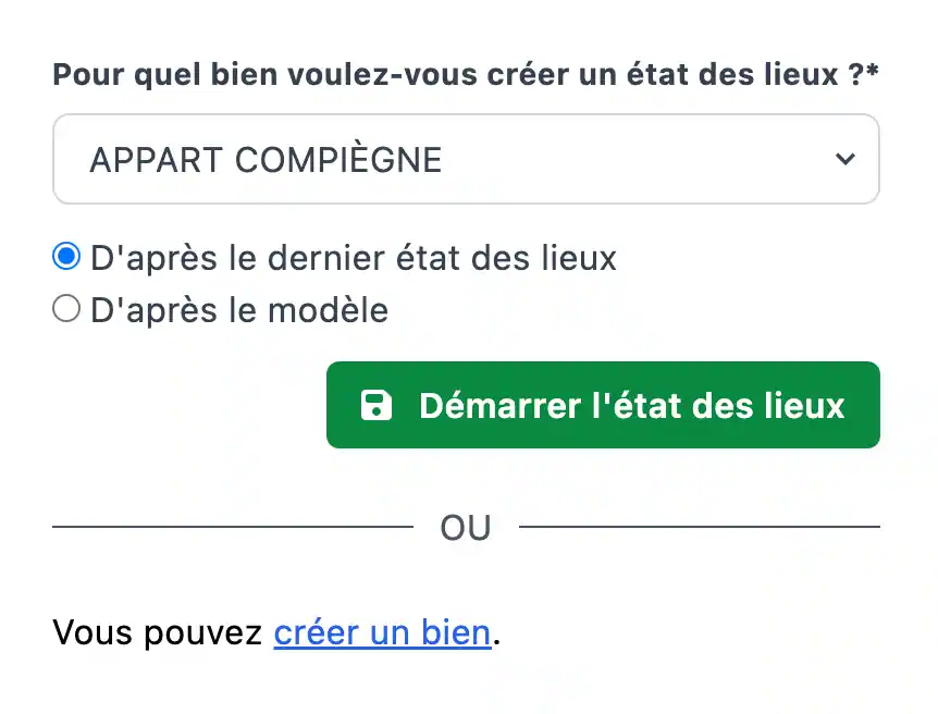 Quand vous voudrez créer un nouvel état des lieux, il vous sera demandé à partir de quel support vous souhaitez le faire :
