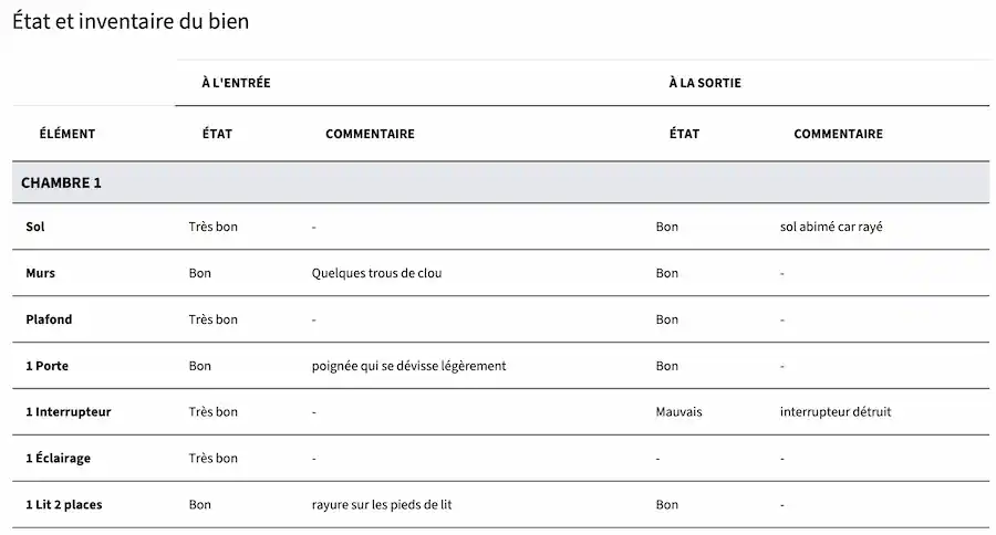 L'état du bien doit être vérifié sans forcément se fier au modèle car il doit refléter l'état exact du logement.