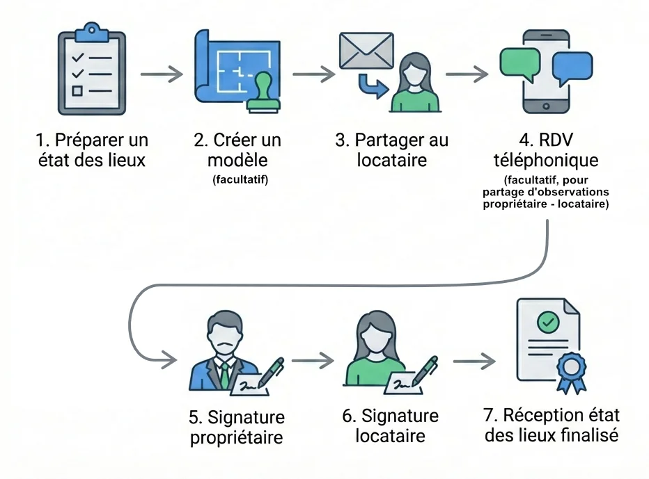 Au moment d'un état des lieux, vous êtes invité à évaluer l'état du bien et à prendre des photos si vous le souhaitez.