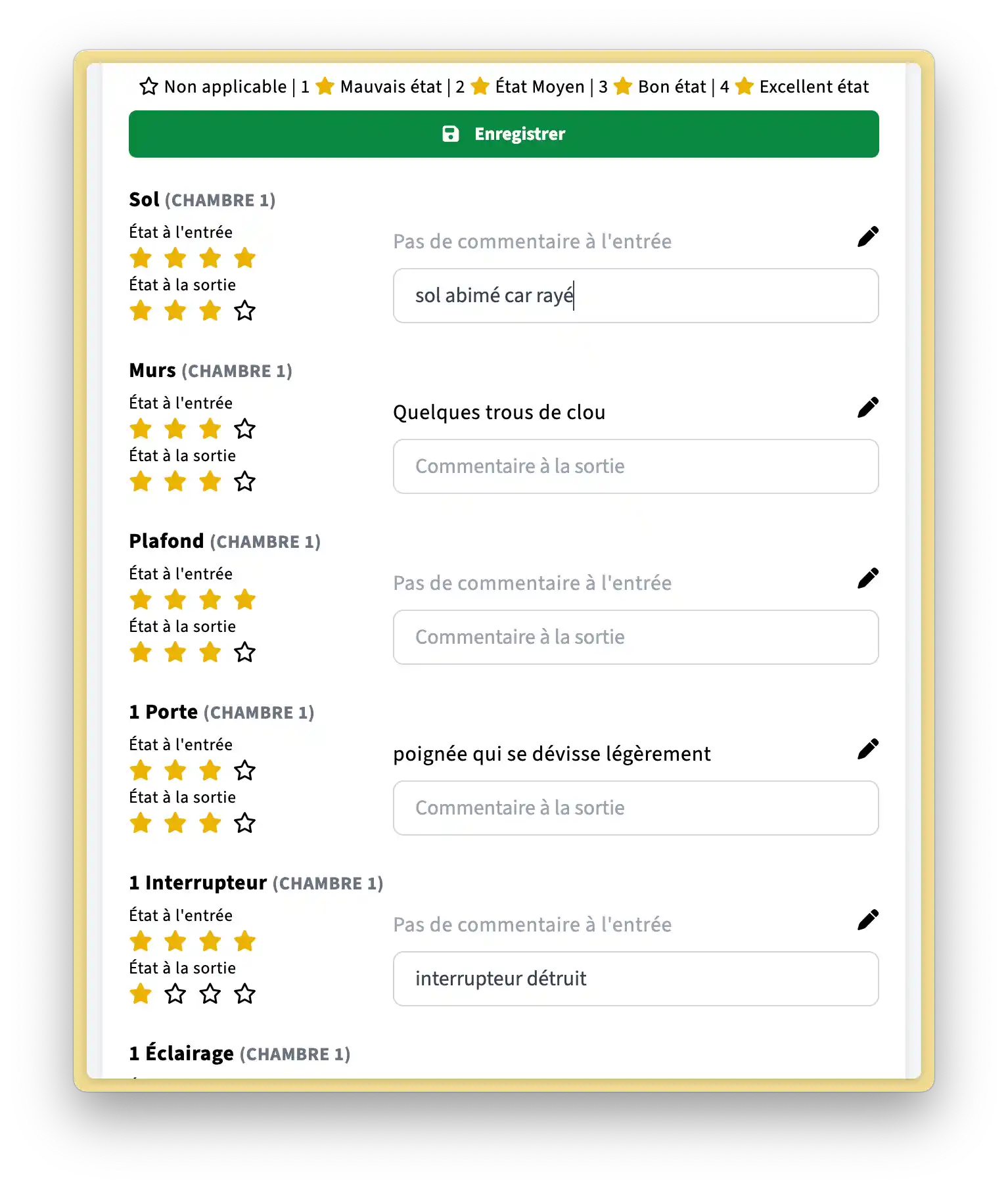 Il s'affichera alors ainsi dans votre état des lieux :