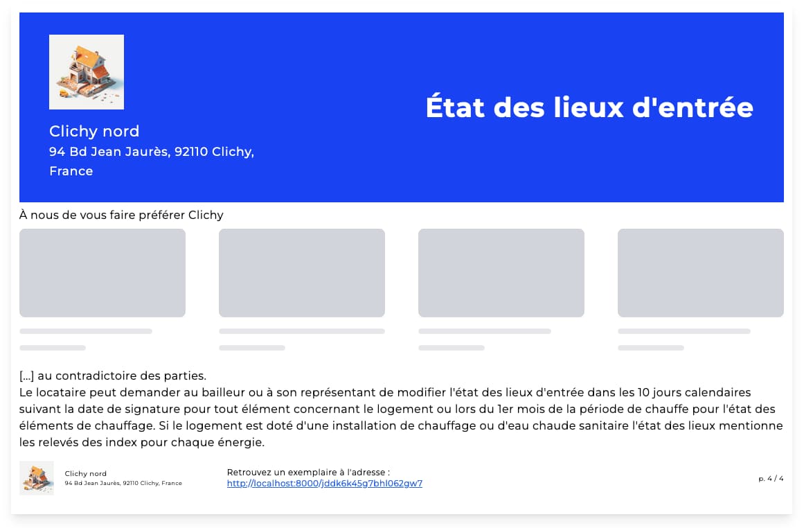 La mise en forme des états des lieux est alors personnalisable :