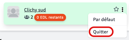 Les membres d'une équipe peuvent la quitter à tout moment en allant sur la page de l'équipe ou sur la liste de toutes ses équipes et cliquer sur quitter dans le menu déroulant.